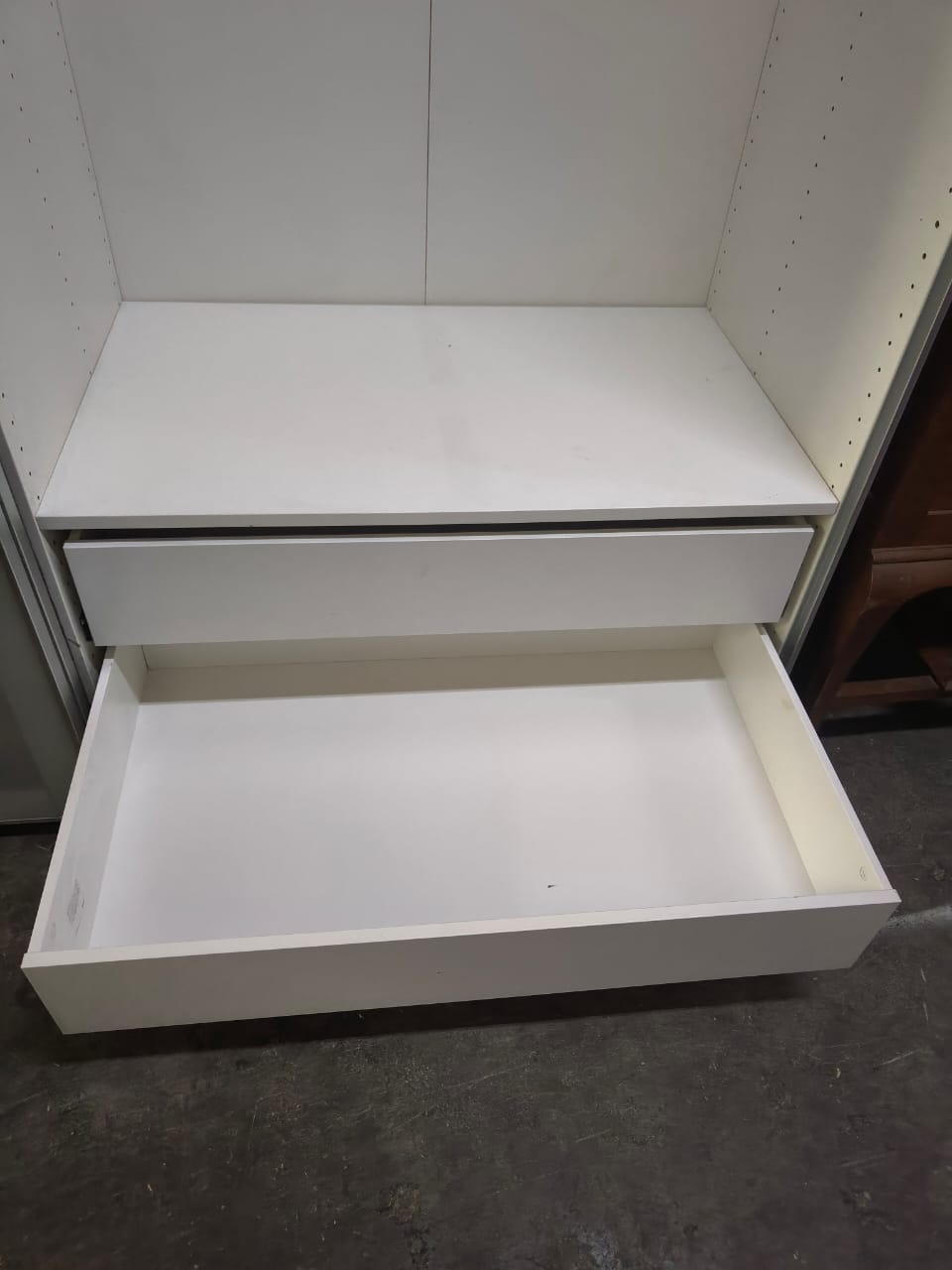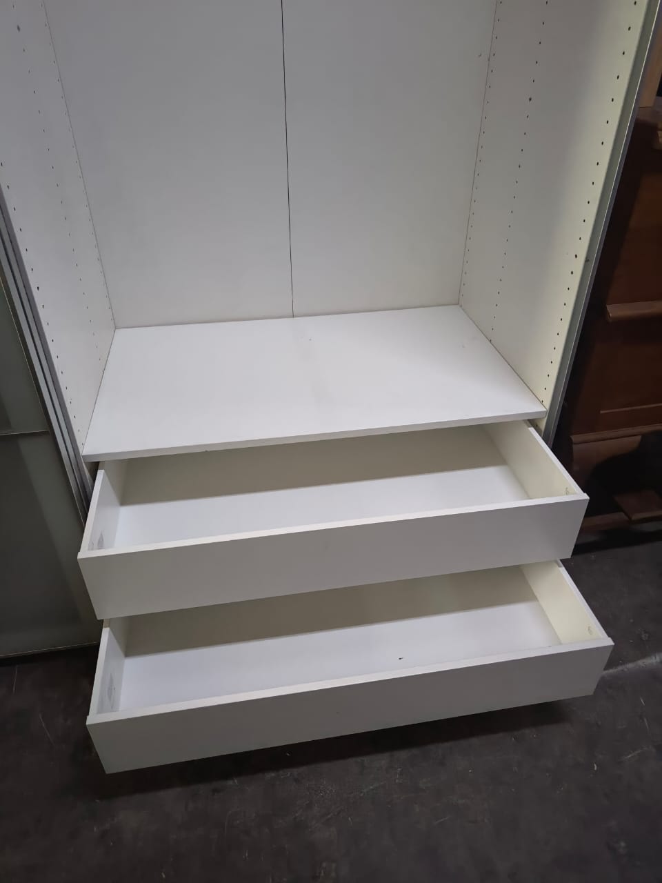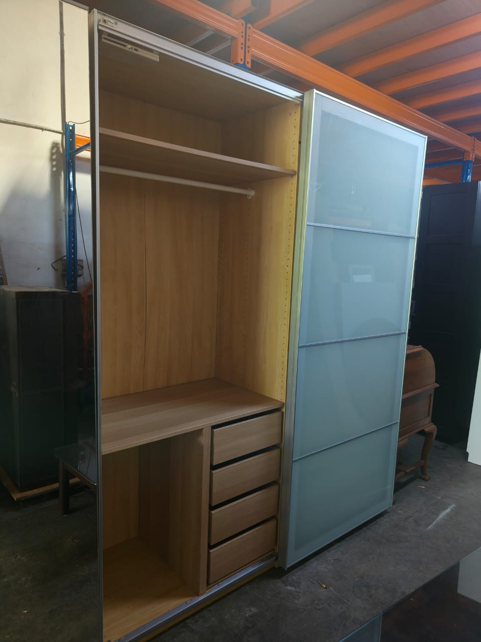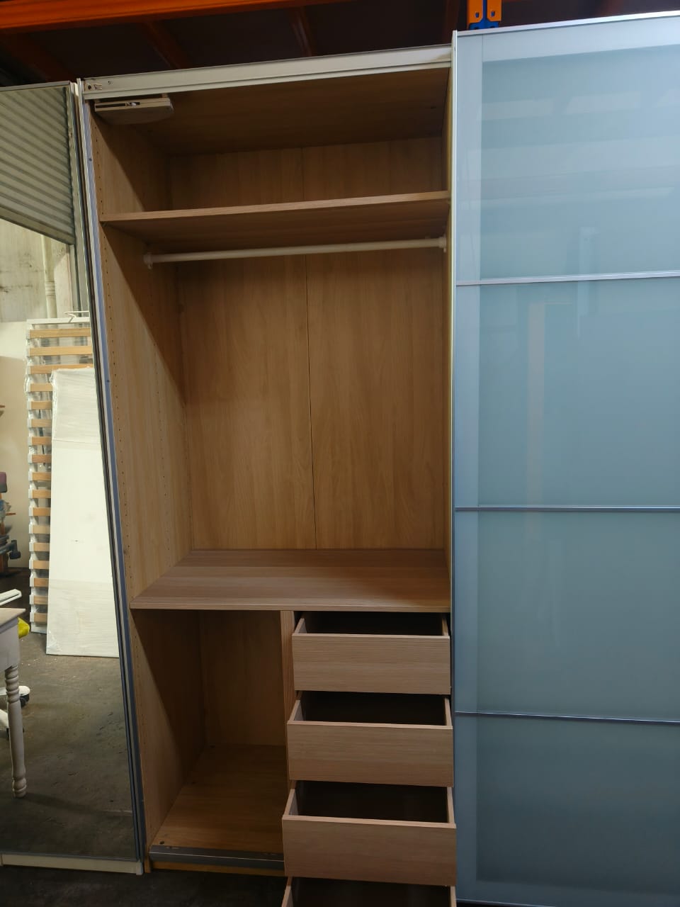 A beautiful IKEA Wardrobe received at our store at QQ Furniture Enterprise, second hand furniture in Malaysia.  IKEA Sliding wardrobe complete with drawers and hanging rode.  We are located at Johor Bahru.  If you are looking for second hand furniture in KL or others located in Malaysia, we do deliver to all Malaysia.  Please chat with us.