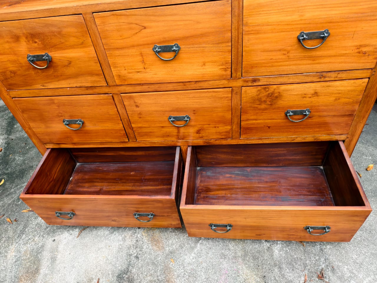Teak Wood Console Table with 8 Drawers 新山二手柚木收纳柜